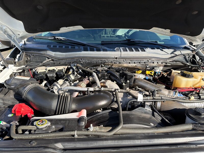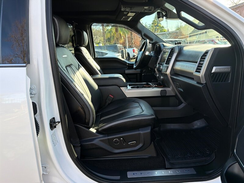 Introducing the 2018 Ford F-450 Super Duty Platinum, a robust and versatile truck designed for both work and play. This one-owner vehicle features a striking White Platinum Metallic Tri-Coat exterior paired with a sophisticated black leather interior.