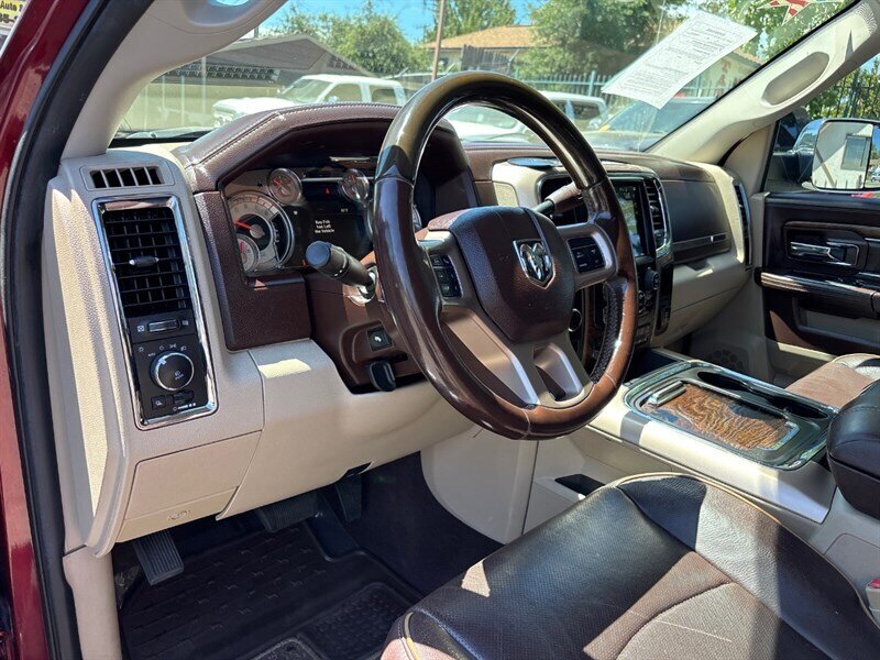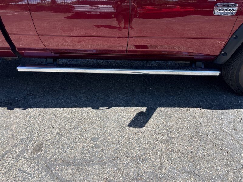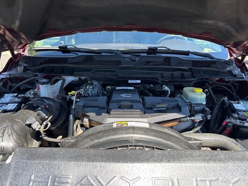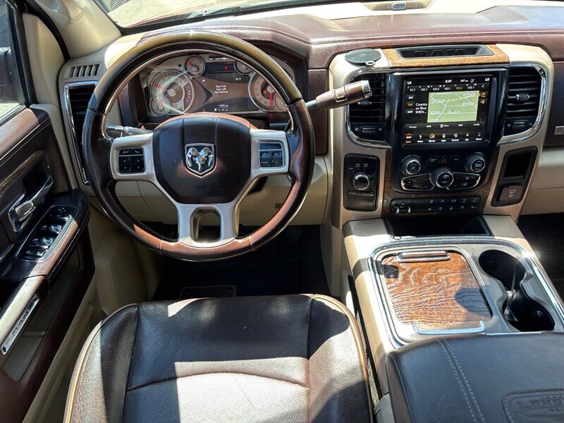 This 2018 RAM 2500 Laramie Longhorn Mega Cab 4X4 with Tow Package is equipped with a powerful Cummins 6.7L Diesel Turbo I6 engine producing 370hp and 800ft. lbs. of torque. The factory default features include premium leather seating in Black/Cattle Tan, wood interior accents, a large touchscreen infotainment system, navigation, Bluetooth connectivity, heated and ventilated front seats, heated rear seats, a heated steering wheel, dual-zone climate control, a backup camera, parking sensors, adaptive cruise control, and more. The exterior is finished in Delmonico Red Pearl Coat, adding a touch of sophistication to this rugged truck. This vehicle is in excellent overall condition, ready to tackle any task with style and comfort.