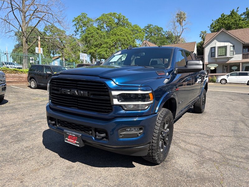 2021 RAM 2500 Laramie Mega Cab 4x4 with the Cummins 6.7L Turbo Diesel (370 hp / 850 lb-ft). Exterior in Patriot Blue Pearl Coat with a Black interior, one owner, below 51,000 miles (averaging under 9,000 miles/year) and in excellent overall condition.