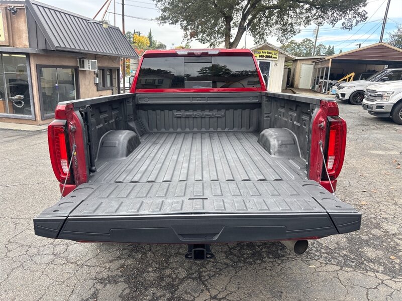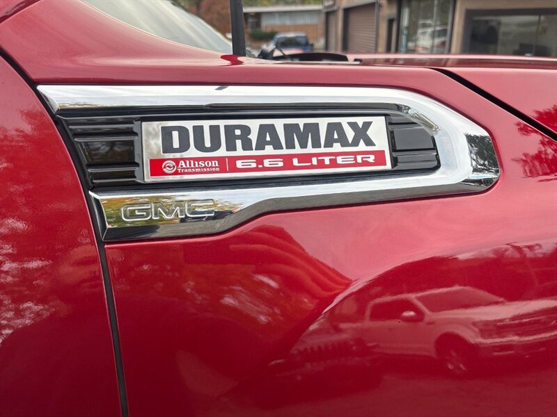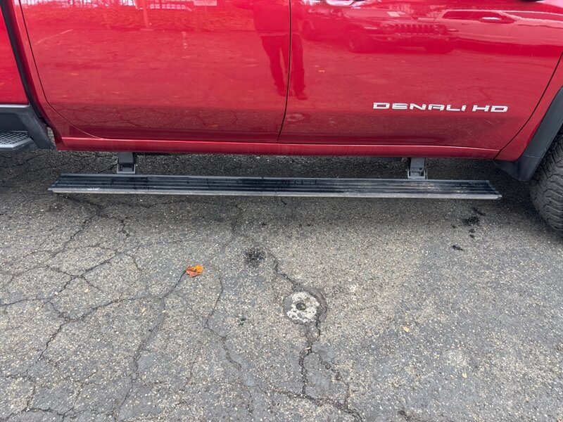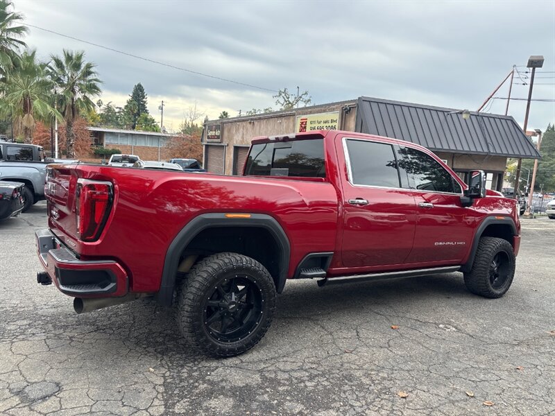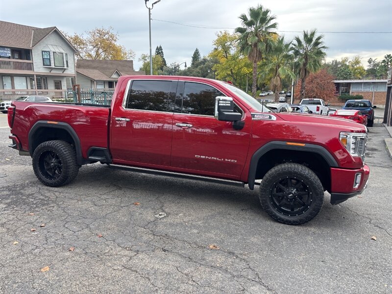 Introducing the 2022 GMC Sierra 2500HD Denali Crew Cab in Cayenne Red Tintcoat. This powerhouse is equipped with a Duramax 6.6L Biodiesel Turbo V8 engine, boasting 445hp and 910ft. lbs. of torque. Factory default features include 4X4 capability for versatile terrain navigation, a tow package for added utility, a rear camera for enhanced visibility, and a lifted suspension for an elevated driving experience. The interior is styled in Jet Black, complementing the sleek exterior. This vehicle is in excellent overall condition, ready to tackle any adventure with confidence.