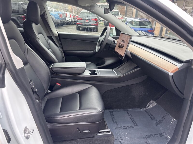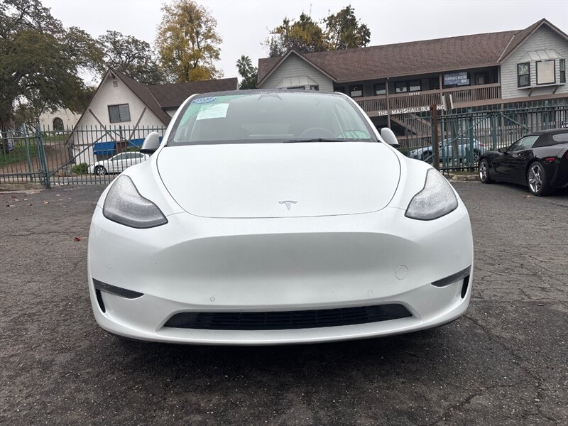 Introducing the 2022 Tesla Model Y Long Range, featuring All-Wheel Drive for optimal performance in various conditions. This model showcases a striking Pearl White Multi-Coat exterior, complemented by a sleek Black interior. Equipped with advanced technology, the Model Y includes a rear camera for enhanced visibility and navigation capabilities to guide your journeys seamlessly.