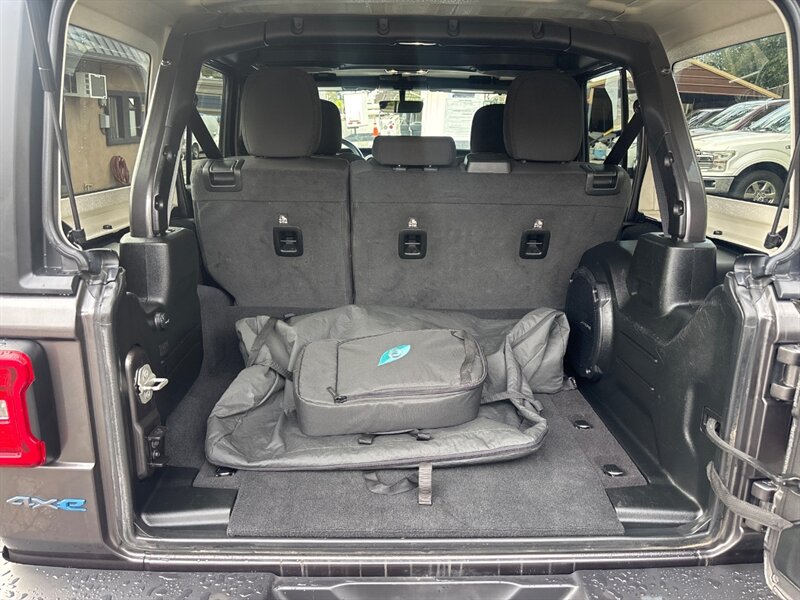 Explore the adventurous spirit of the 2023 Jeep Wrangler Rubicon 4xe, a plug-in hybrid that combines rugged capability with modern efficiency. This one-owner vehicle is powered by a robust 2.0L Plug-in Hybrid Turbo I4 engine, delivering an impressive 375 horsepower and 470 ft-lbs of torque. The exterior shines in a sleek Granite Crystal Metallic Clear Coat, while the interior features a classic Black finish, providing a stylish yet functional environment.